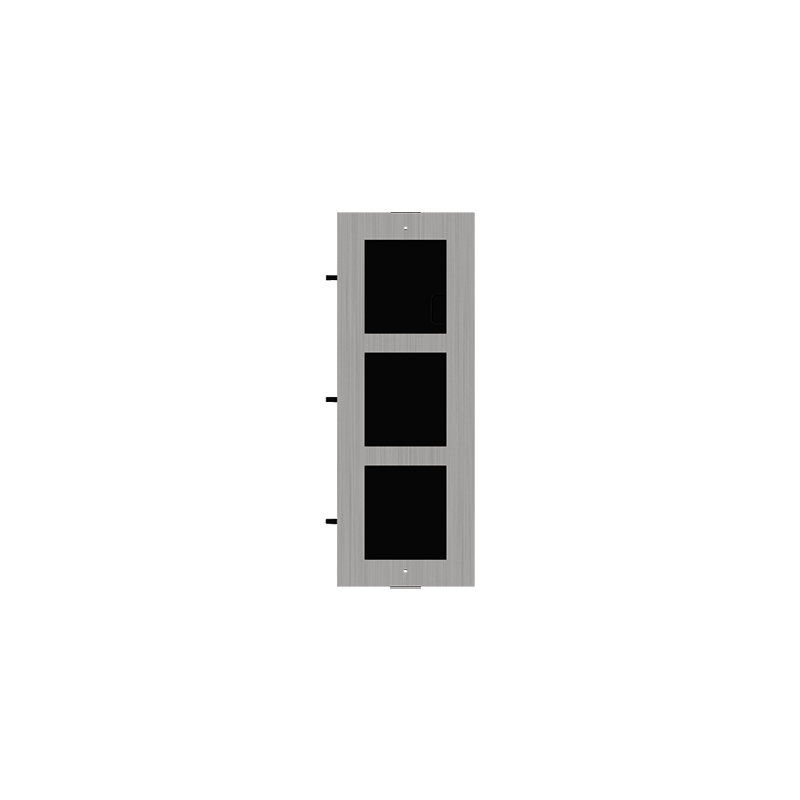 Suport module interfon Hikvision. Pot fi montate 3 module, montaj ingropat, rama din otel si doze din plastic.