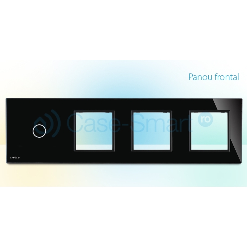 Rama intrerupator cu touch simplu+priza tripla Livolo din sticla, Negru, BB-C7-C1/SR/SR/SR-12