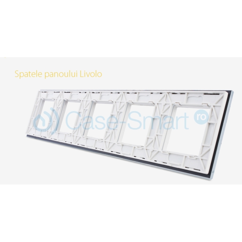 Rama priza cvintuplu Livolo, din sticla - produse premium, calitate dusa la extrem, pot fi montate atat prize simple cat si prize TV, telefon, audio, internet.