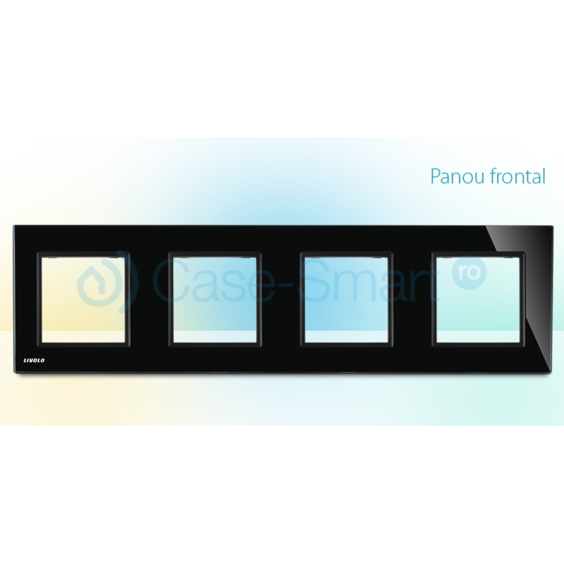 Rama priza cvadrupla Livolo din sticla, Negru, BB-C7-4SR-12
