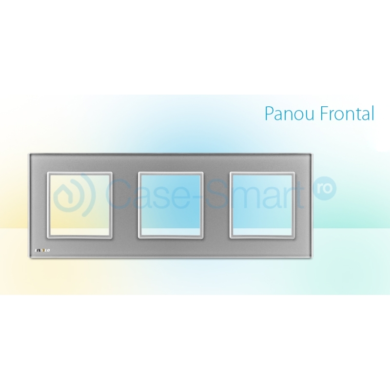 Rama priza tripla Livolo din sticla, Gri, VL-P7E/E/E-6I
