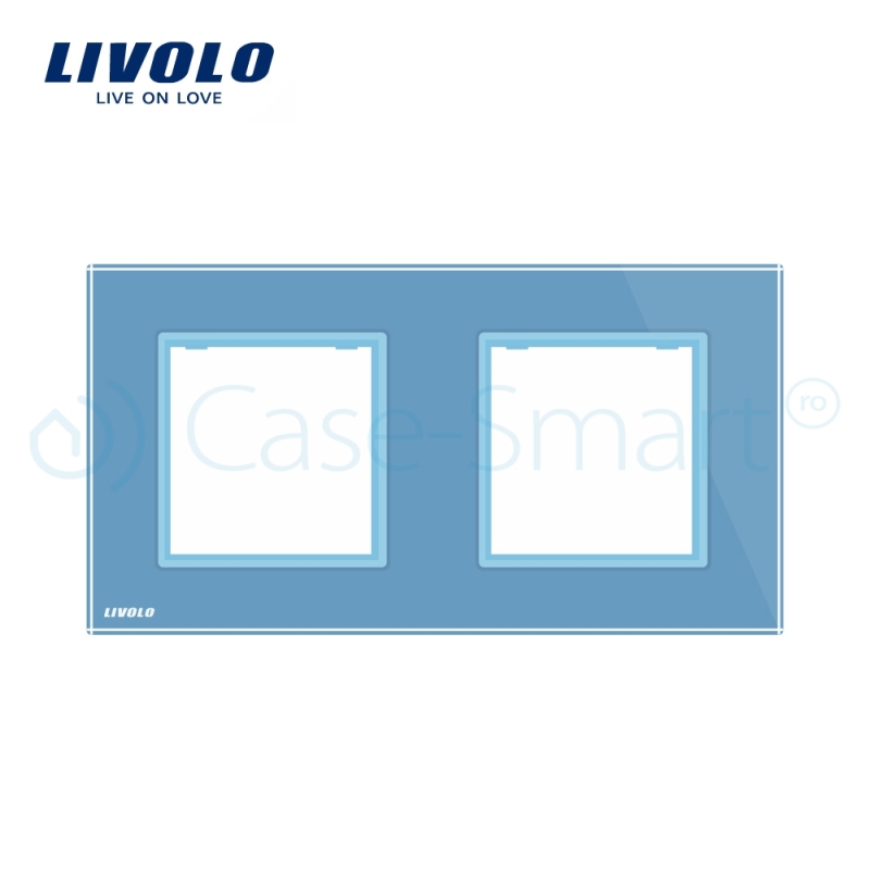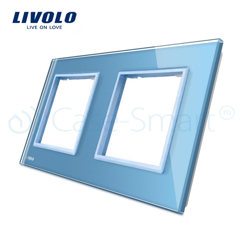 Rama priza dubla Livolo din sticla, Albastru, BB-C7-SR/SR-19