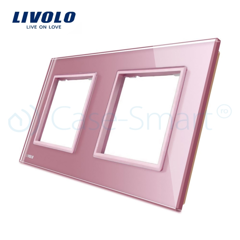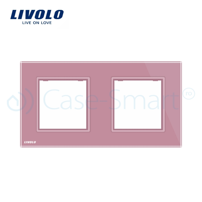 Rama priza dubla Livolo din sticla, Roz, BB-C7-SR/SR-17