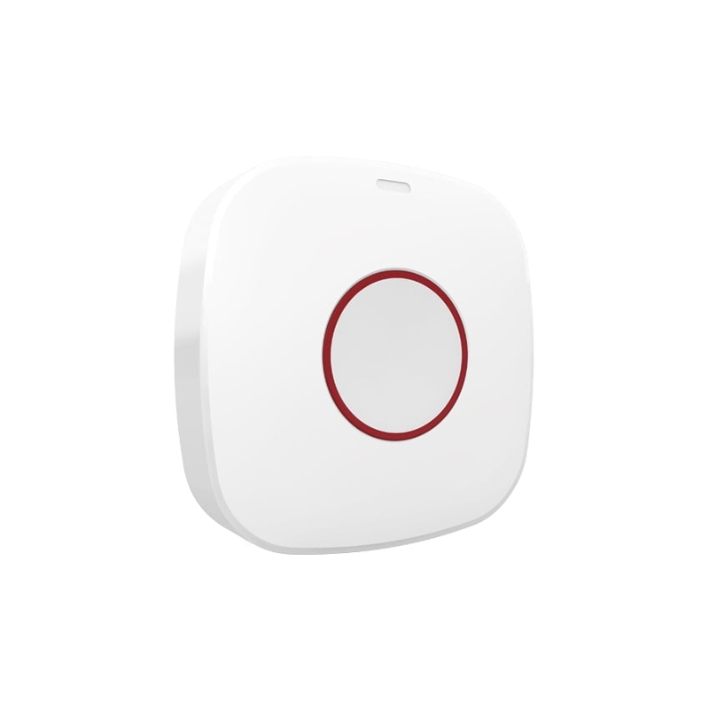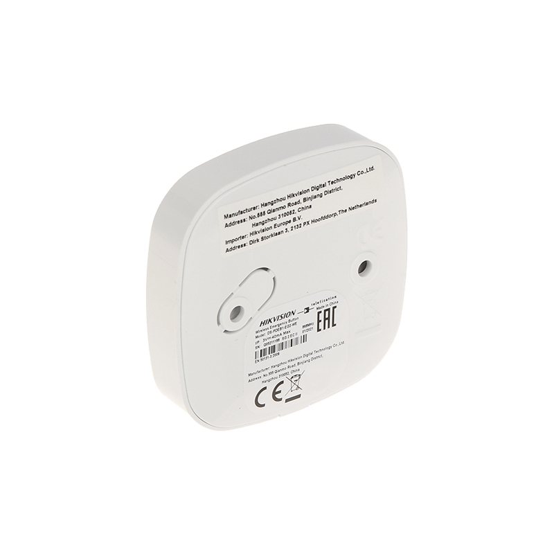 Buton de urgenta fara fir de la Hikvision, montaj aplicat pe perete, birou, etc., un buton dispus central pentru o actionare usoara, comunicare radio cu centrala pe distante de pana la 1.2 Kilometri in camp deschis, durata medie de viata baterie de pana la 3 ani (baterii inclusa).