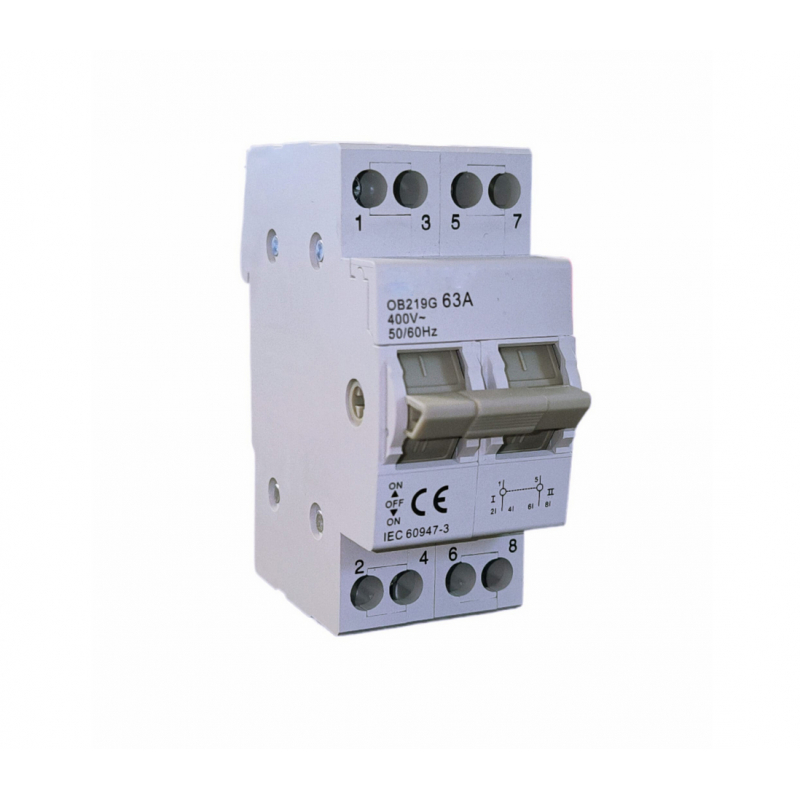 Echipat cu două poli (2P), comutatorul suportă un curent nominal de 63A și oferă performanță optimă pentru o gamă variată de aplicații. Designul compact și funcționalitatea îl fac ușor de utilizat, oferind o comutare precisă între sursa principală și cea de rezervă.