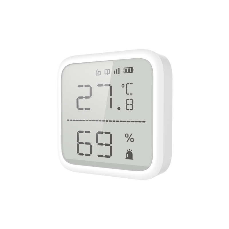 DS-PDTPH-E-WE este o statie de urmarire a temperaturii ambientale (- 10 °C ~ +55 °C / - 35 °C ~ +99 °C - cu sonda) si a umiditatii, avand un ecran de 2.7 inch, destinata AX PRO. Distanta de comunicare cu centrala AX PRO este de 1.2Km in camp deschis. Alimentarea se face cu ajutorul a doua baterii AAA. Montarea se va face pe perete in interior.