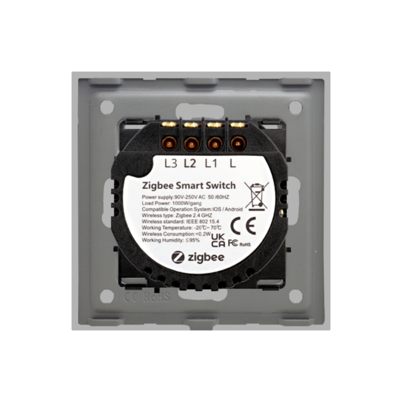 Intrerupator Triplu cu Touch din Sticla Luxion, protocol ZigBee, Gri, LX-ZT-301G-GY