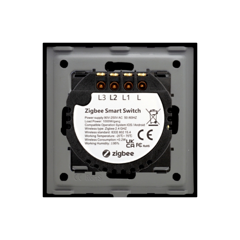 Intrerupator Triplu cu Touch din Sticla Luxion, protocol ZigBee, Negru, LX-ZT-301G-B