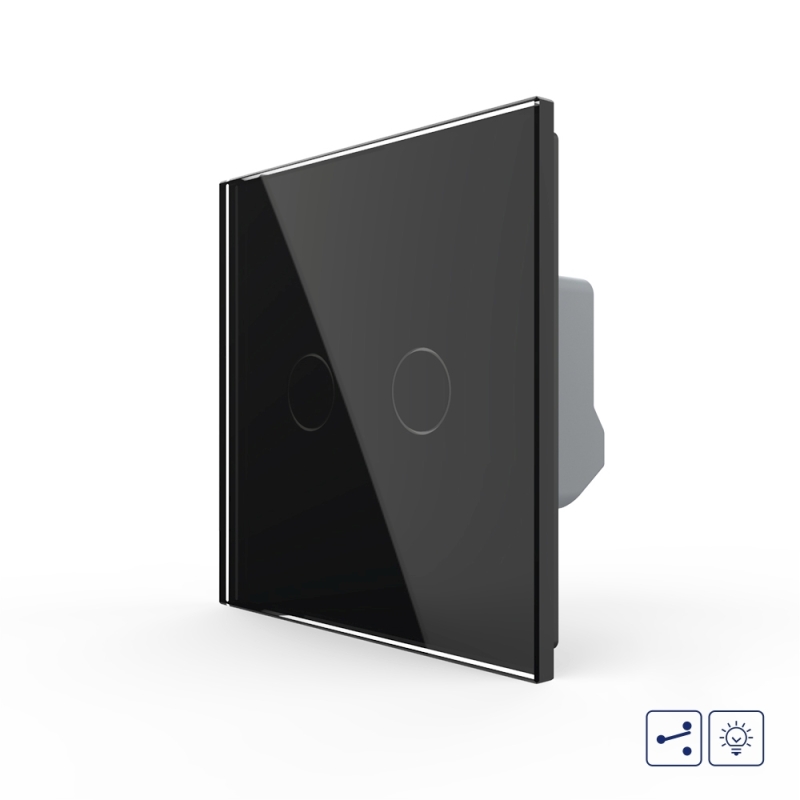Intrerupator Dublu Cap Scara / Cruce cu Variator si Touch Livolo Serie Noua, Negru, VL-FC2SD2-2G-12