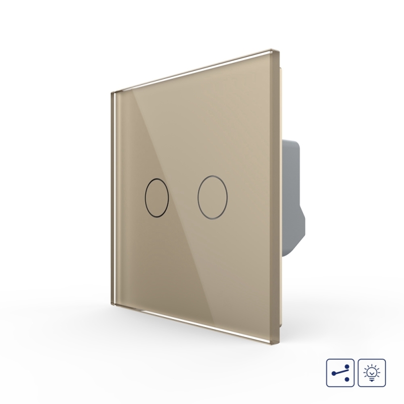 Intrerupator Dublu Cap Scara / Cruce cu Variator si Touch Livolo Serie Noua, Auriu, VL-FC2SD2-2G-13