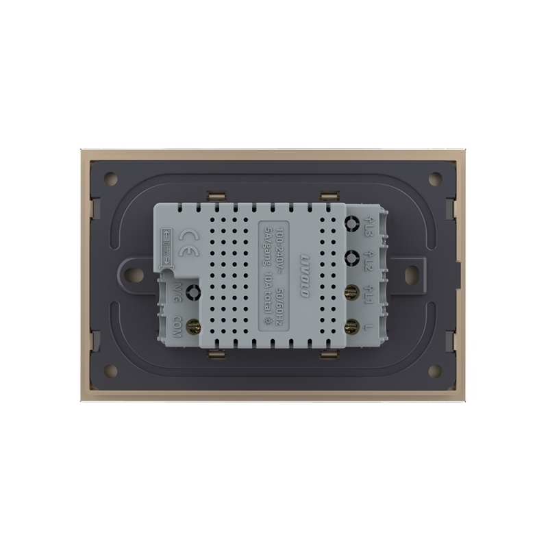 Intrerupator simplu cap scara / cap cruce wireless cu touch Livolo cu rama din sticla, Serie noua, Auriu, VL-FC1SR-3AP-13
