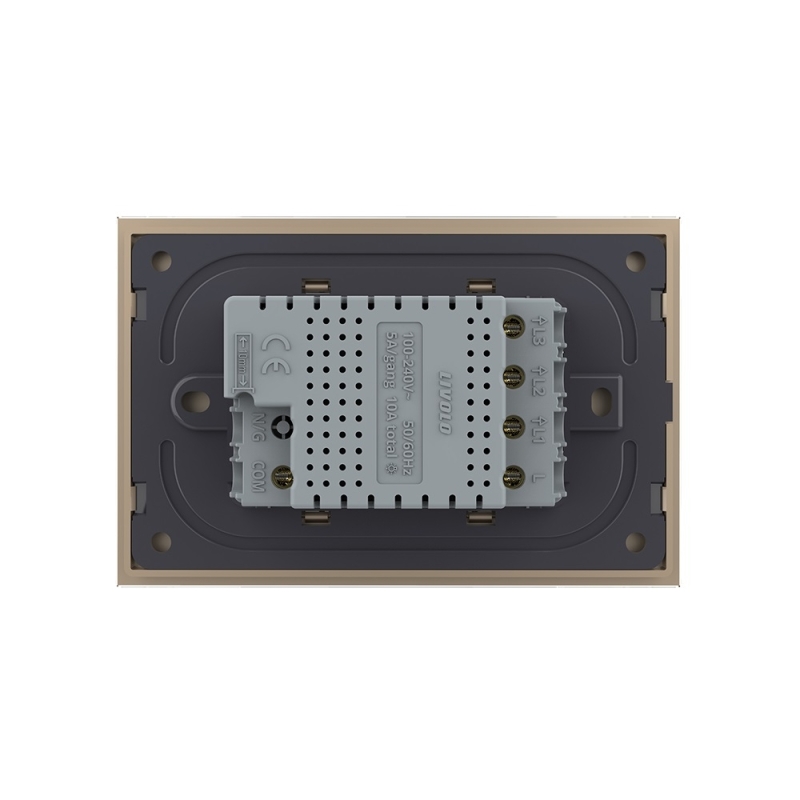 Intrerupator triplu cap scara / cap cruce cu touch Livolo cu rama din sticla, standard Italian Serie noua, Auriu, VL-FC3S-3AP-13