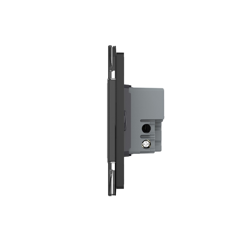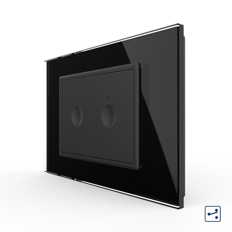 Intrerupator dublu cap scara / cap cruce cu touch Livolo cu rama din sticla, standard Italian Serie noua, Negru, VL-FC2S-3BP-12