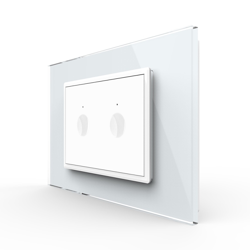 Intrerupator dublu cu touch Livolo cu rama din sticla, standard Italian Serie noua, Alb, VL-FC2-3WP-11
