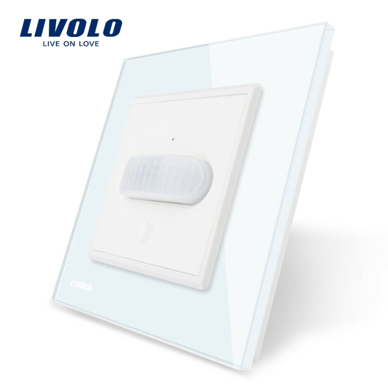 Intrerupator senzor de miscare PIR Livolo cu rama din sticla, Alb, VL-FCU-2WP-11