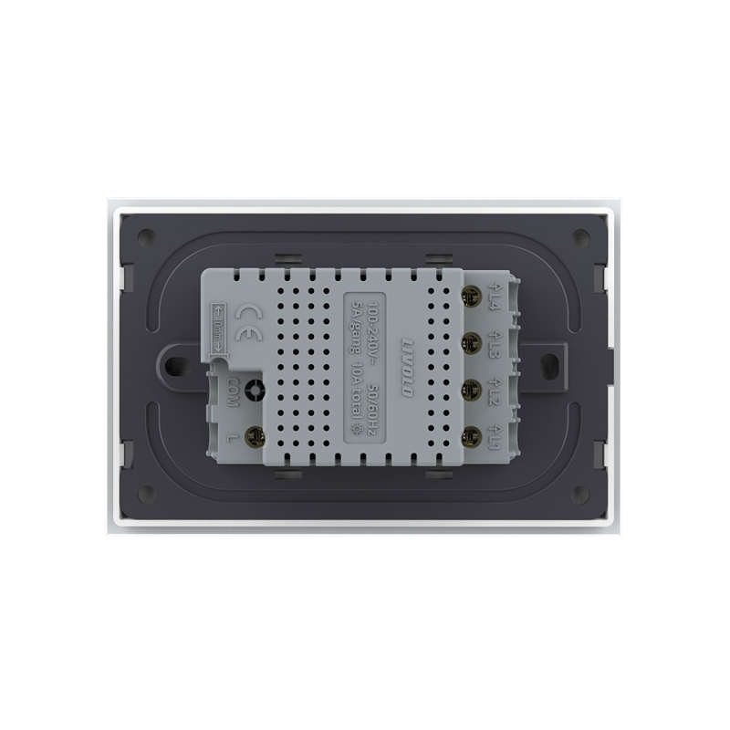Intrerupatorul cvadruplu cu touch din sticla Livolo - standard Italian VL-C304, are un design contemporan si se potriveste cu interiorul oricarei case moderne sau clasice. Intrerupatoarele Livolo folosesc un senzor tactil cu 100ms timp de raspuns, similar cu tehnologia folosita la smartphone-uri. Panoul din sticla al intrerupatorului, este din sticla securizata, rezistenta la foc. Ledul rosu/albastru indica statusul on/off al intrerupatorului si poate fi cu usurinta identificat in intuneric. Intrerupatoarele standard italian sunt compatibile cu dozele modulare in 3 module cu distanta dintre suruburi de 85mm.