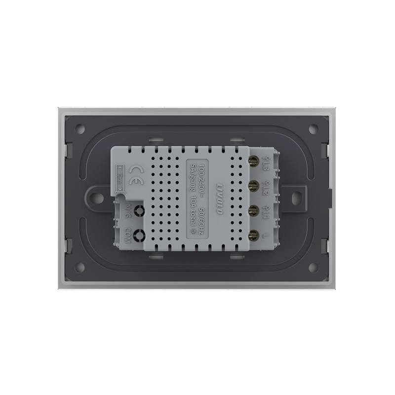 Intrerupatorul triplu cu touch din sticla Livolo - standard Italian are un design contemporan si se potriveste cu interiorul oricarei case moderne sau clasice. Intrerupatoarele Livolo folosesc un senzor tactil cu 100ms timp de raspuns, similar cu tehnologia folosita la smartphone-uri. Panoul din sticla al intrerupatorului, este din sticla securizata, rezistenta la foc. Ledul rosu/albastru indica statusul on/off al intrerupatorului si poate fi cu usurinta identificat in intuneric. Intrerupatoarele standard italian sunt compatibile cu dozele modulare in 3 module cu distanta dintre suruburi de 85mm.