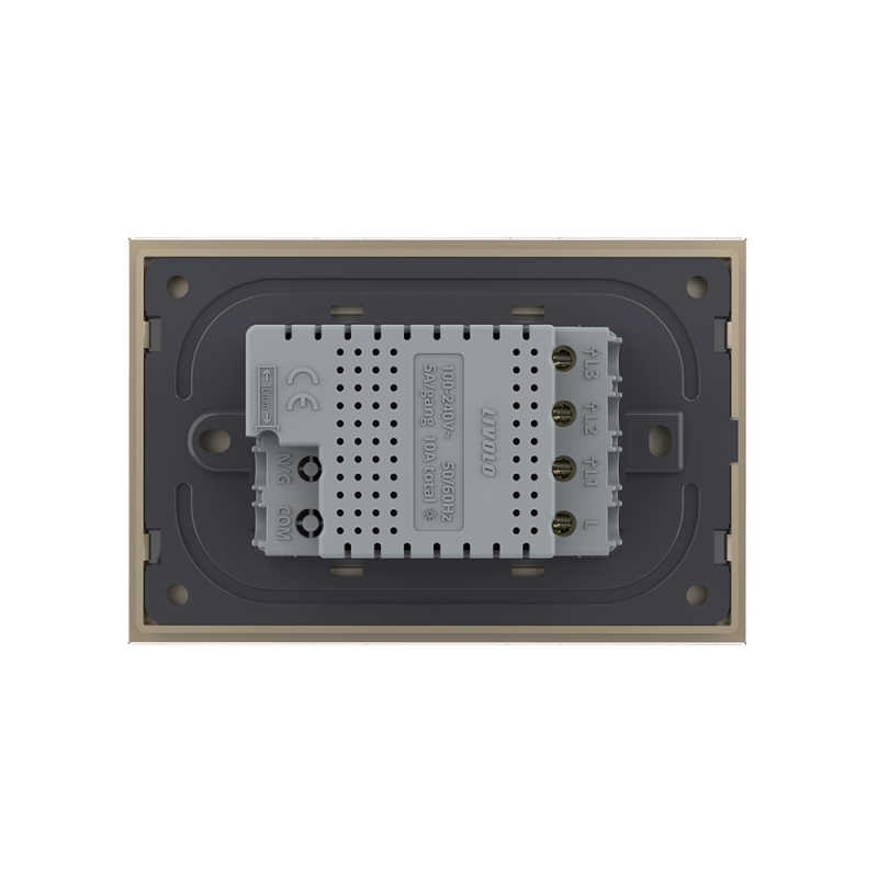 Intrerupator triplu cu touch Livolo din sticla, standard italian, Auriu, VL-FC3-3G-13