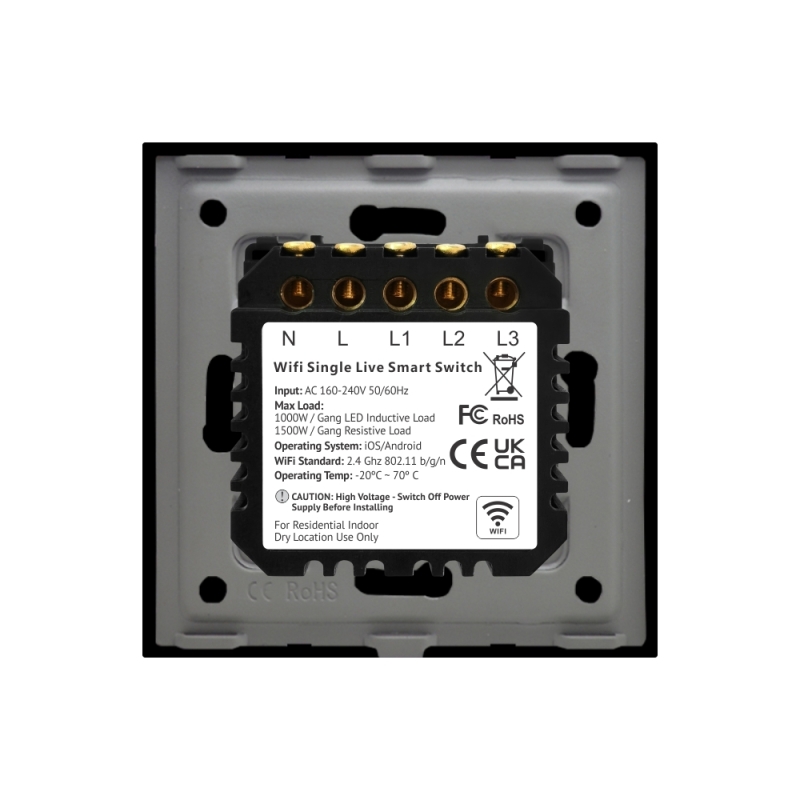Intrerupator Triplu Wi-Fi cu Touch din Sticla si Rama de Aluminiu LUXION, Negru, LX-WT2-301A-B