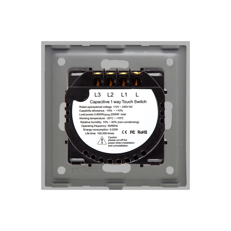 Intrerupator Triplu cu Touch din Sticla si Rama de Aluminiu LUXION, Gri, LX-MT-301A-GY