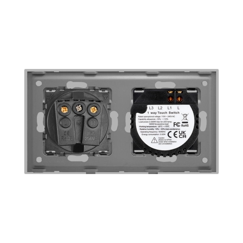 Intrerupator simplu + priza cu rama din sticla LUXION se diferentiaza prin design-ul compact, elegant si minimalist. Structura este durabila, iar produsele nu se decoloreaza in timp. Este un produs practic, fabricat din materiale de calitate si rezistente in timp, ce ofera utilitate si confort casei tale.