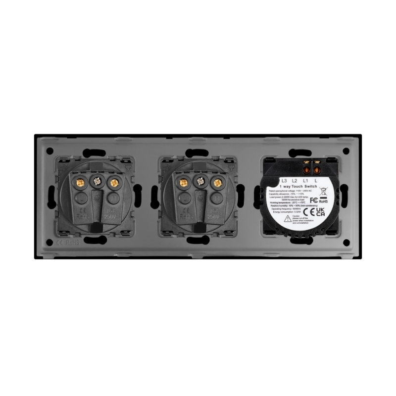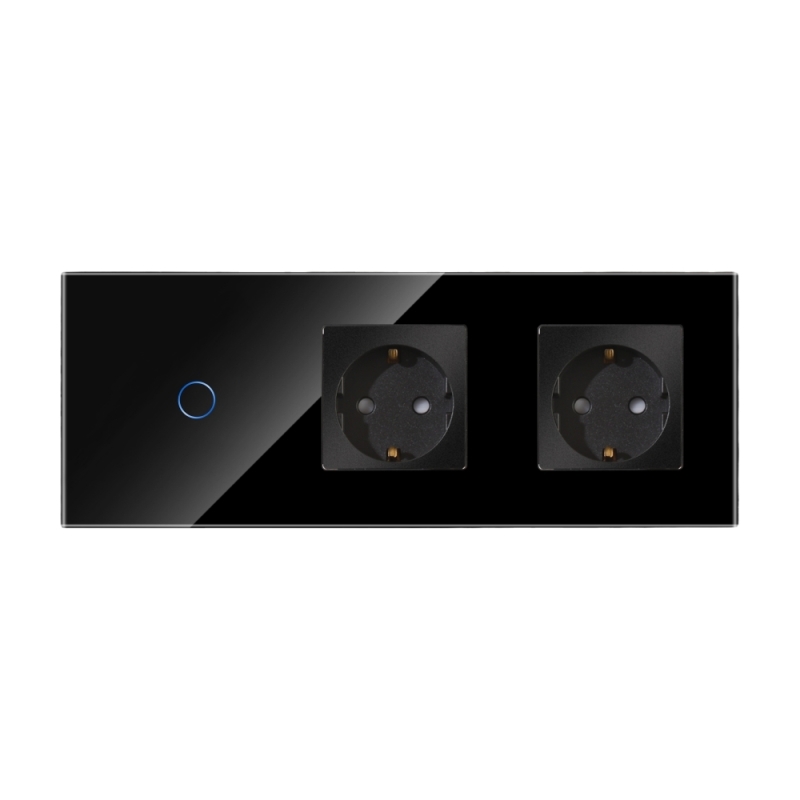 Intrerupator simplu + 2 prize cu rama din sticla LUXION cu design compact, elegant si minimalist. Structura este durabila, iar produsele nu se decoloreaza in timp. Este un produs practic, fabricat din materiale de calitate si rezistente in timp, ce ofera utilitate si confort casei tale.