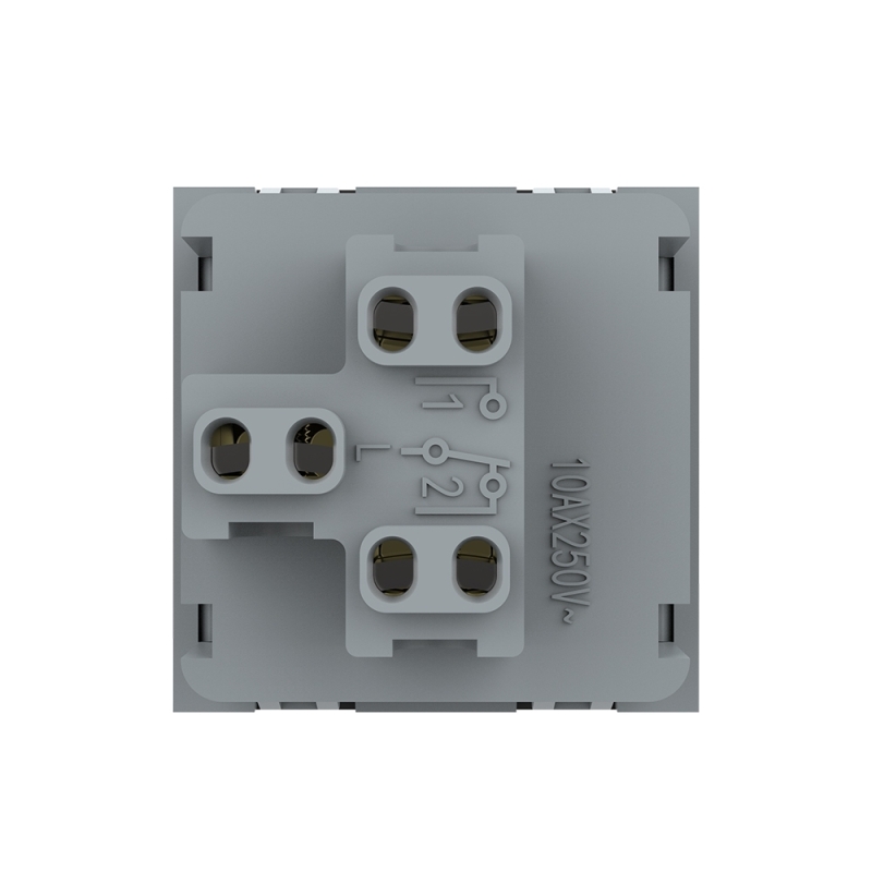 Modul intrerupator simplu mecanic cu reset (revenire) Livolo, 2 module. Produsul este compatibil cu ramele din sticla pentru doze standard german sau doze modulare italiene.