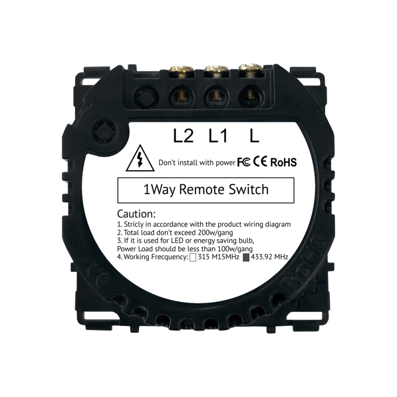 Modulul de intrerupator dublu Luxion, RF433 se poate monta singur pe un panou Luxion sau impreuna cu alte prize si intrerupatoare Luxion pe o rama din sticla Luxion. Compatibil doar cu ramele si panourile din sticla LUXION. Se poate controla din telecomanda RF LUXION sau telecomanda RF tip comutator Atentie, telecomenzile se achizitoneaza separat!