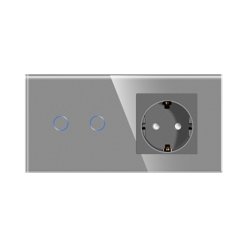 Intrerupator dublu cap scara / cruce + priza cu rama din sticla LUXION, Seria A, cu design compact, elegant si minimalist. Structura este durabila, iar produsele nu se decoloreaza in timp. Este un produs practic, fabricat din materiale de calitate si rezistente in timp, ce ofera utilitate si confort casei tale.