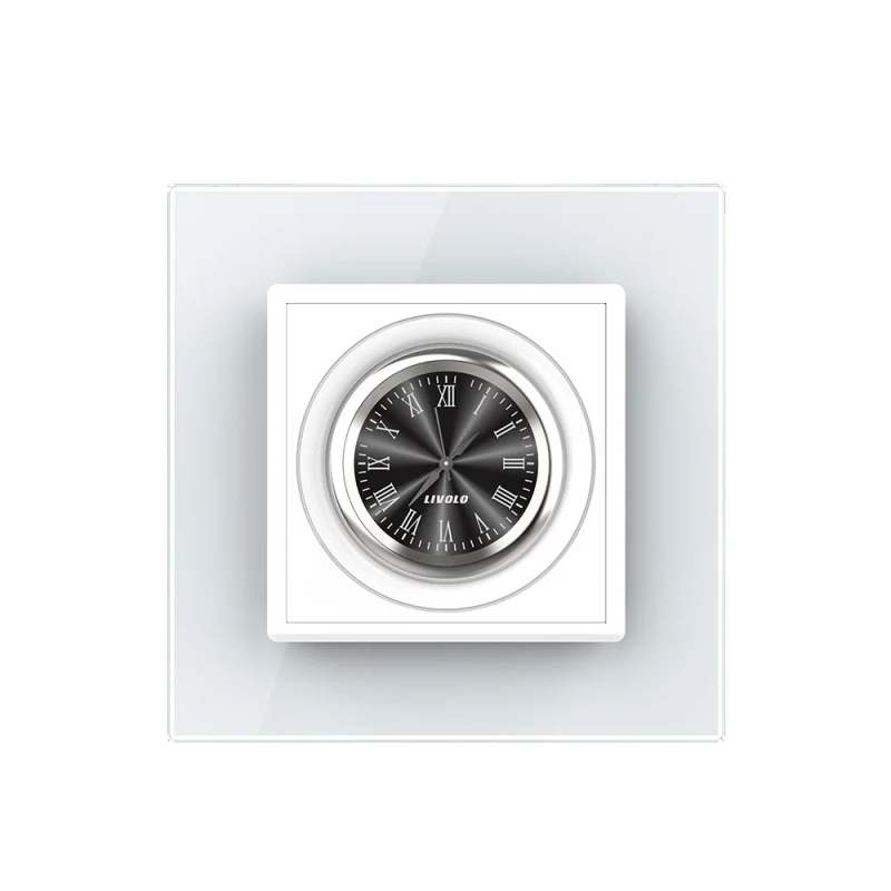 Ceas mecanic decorativ Livolo cu rama din sticla securizata, rezistent la zgarieturi si baterie incorporata cu durata de viata de aproximativ 1 an. Nu se decoloreaza si este accesoriul potrivit ce poate fi atasat pe perete alaturi de alte dispozitive si accesorii Livolo.