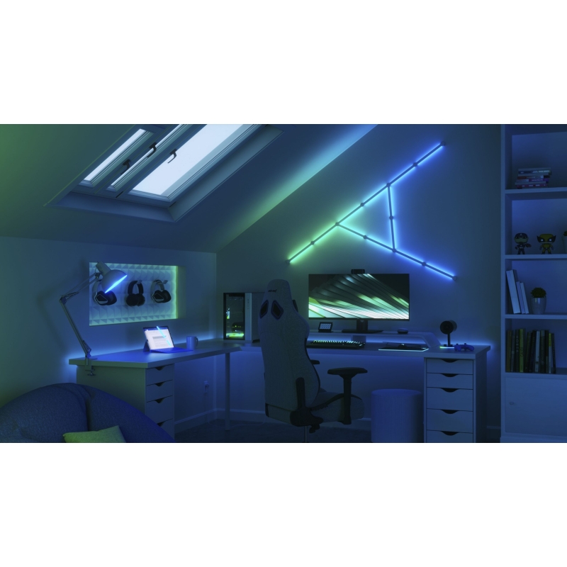 Cu panourile inteligente Nanoleaf Lines, va puteti crea cu usurinta propriul sistem de iluminat. Panourile inteligente sunt alcatuite din panouri LED care se pot controla prin atingere sau prin aplicatia Nanoleaf, disponibila pe iOS si Google Play. Barele luminoase inteligente sunt modulare si se conecteaza impreuna pentru a crea diferite modele. Spectacolele de lumina care schimba culoarea transforma spatiul tau. Se monteaza cu usurinta pe suprafete neporoase cu banda dubla adeziva inclusa in kit. Senzorul audio integrat face ca panourile luminoase sa reactioneze la orice sunet, creand o incursiune completa atat in ceea ce priveste experienta muzicala, cat si cea de gaming.