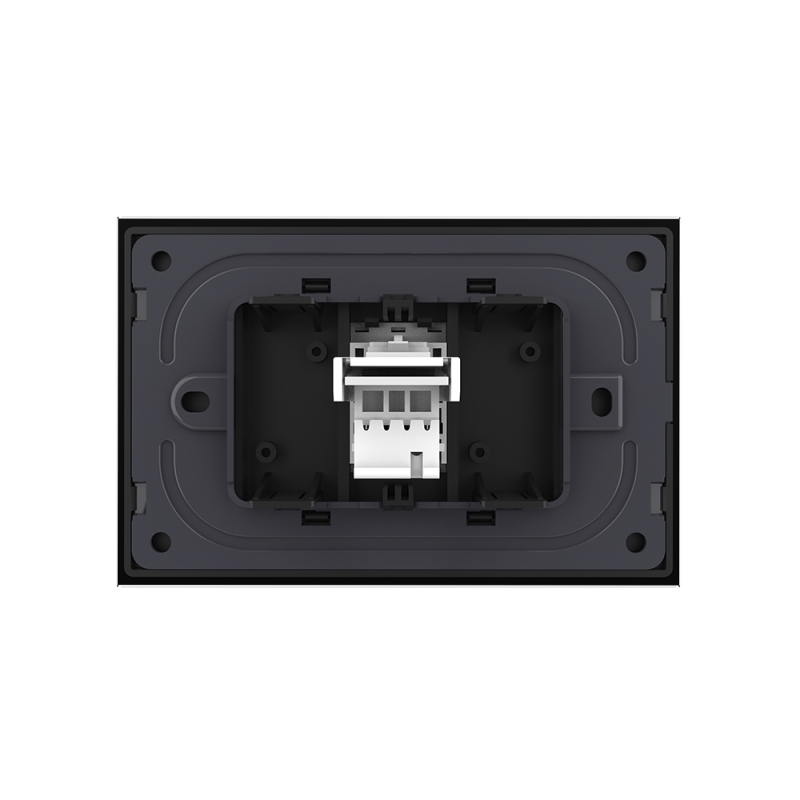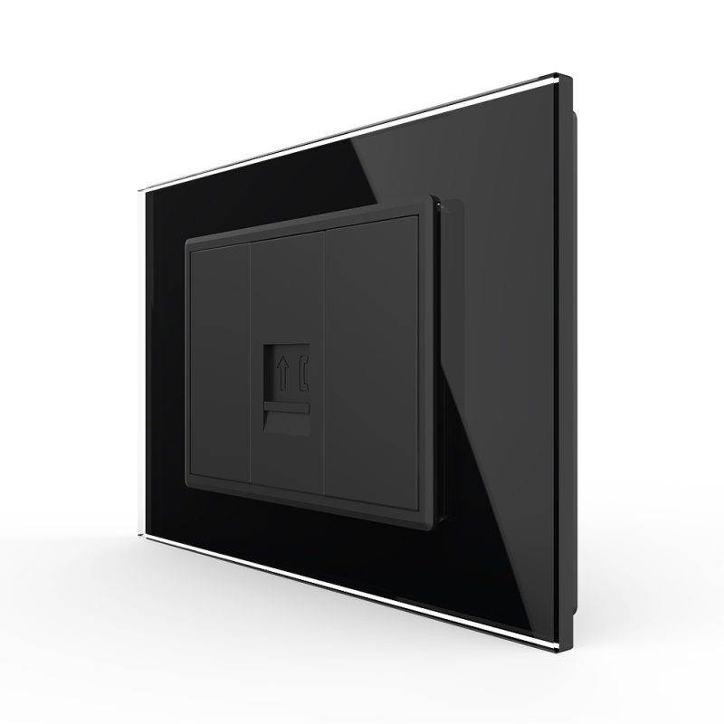 Priza Livolo pentru telefon, cu rama din sticla, pentru dormitor, birou, camera copilului. Produse moderne de inalta calitate. Produsul este compatibil cu doze modulare in 3 module cu distanta dintre suruburi de 85 mm.