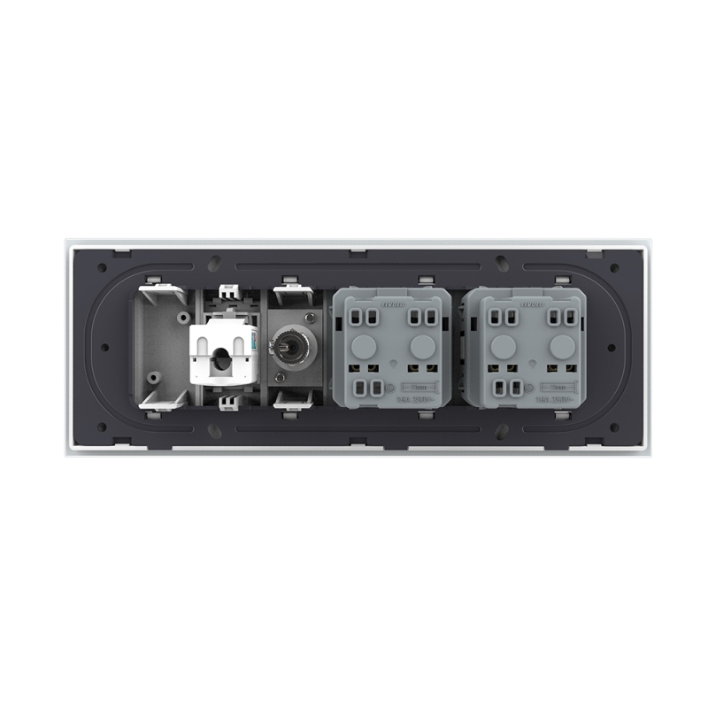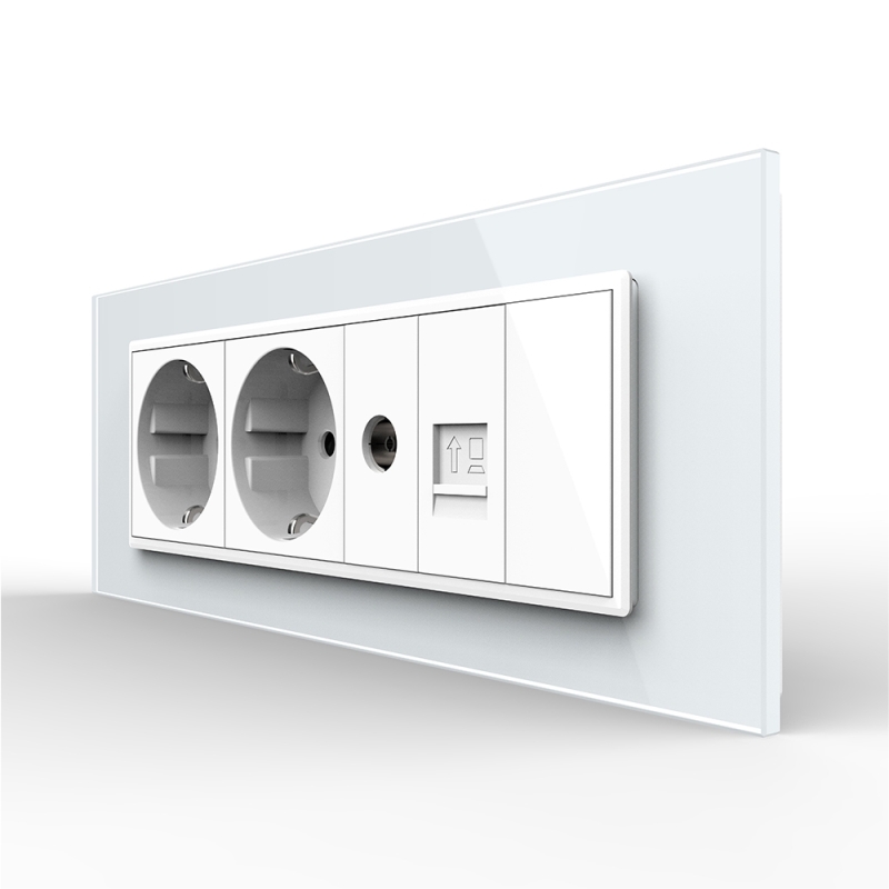 Priza Tripla cu Blank Livolo cu Rama din Sticla 2 Prize Schuko+TV/internet, Standard Italian Serie Noua, Alb, VL-C9-C3EU/VC-11