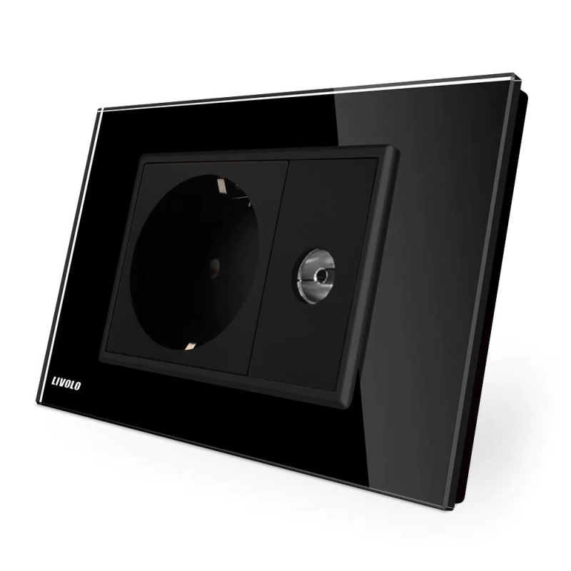 Priza simpla din rama de sticla Schuko cu TV Livolo, Negru, VL-C9C1EU1V-12