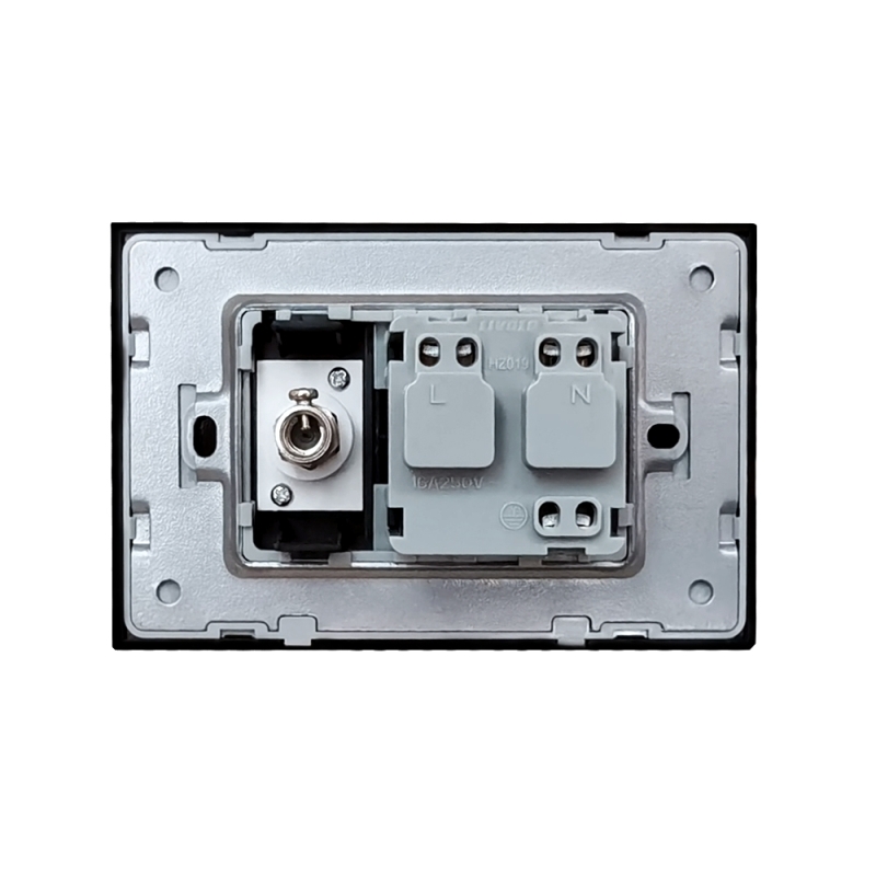 Priza simpla cu TV Livolo cu rama din sticla, model italian pentru case, birouri, spatii comerciale, hoteluri. Produse moderne de inalta calitate. Produsul este compatibil cu doze modulare in 3 module cu distanta dintre suruburi de 85 mm.