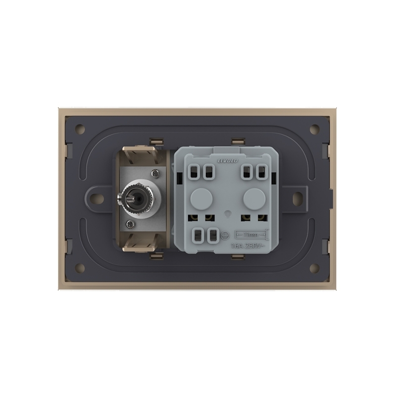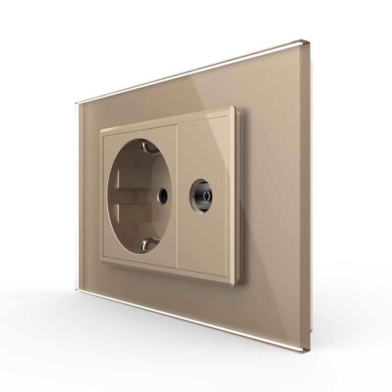 Priza simpla din rama de sticla Schuko cu TV Livolo, Auriu, VL-C9C1EU1V-13