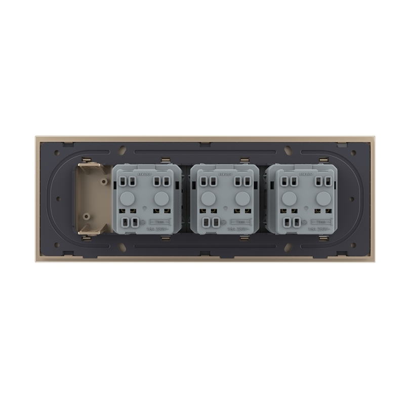 Priza tripla cu blank Livolo cu rama din sticla 6/7 module standard Italian, Auriu, VL-C9-3C1EU-13