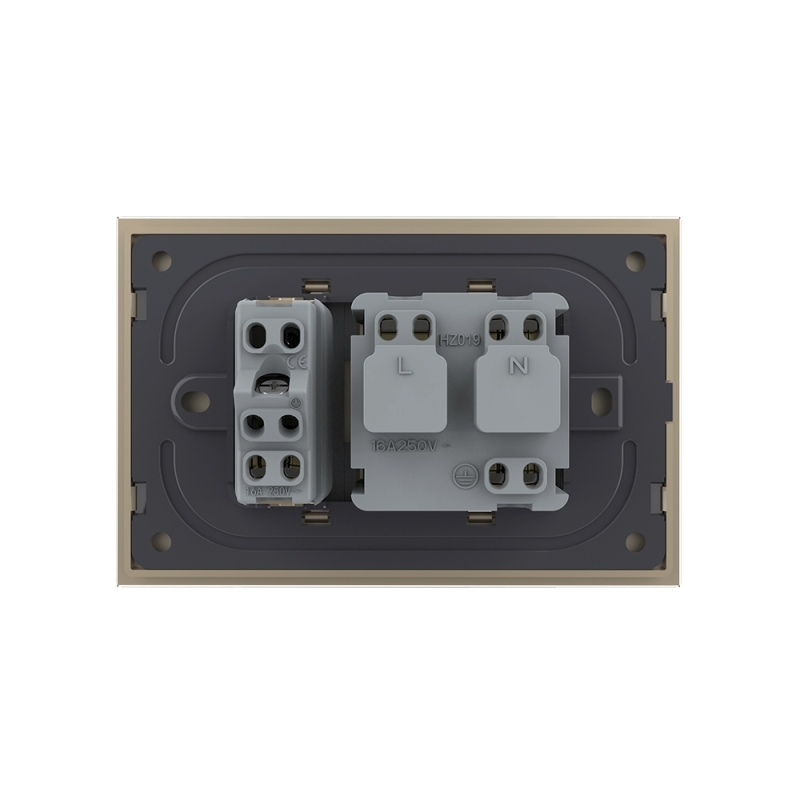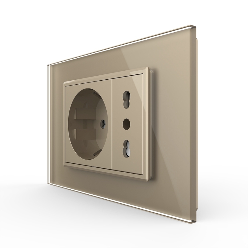 Priza dubla italiana Livolo cu rama din sticla standard italian, Auriu, VL-C3C2CIT-13