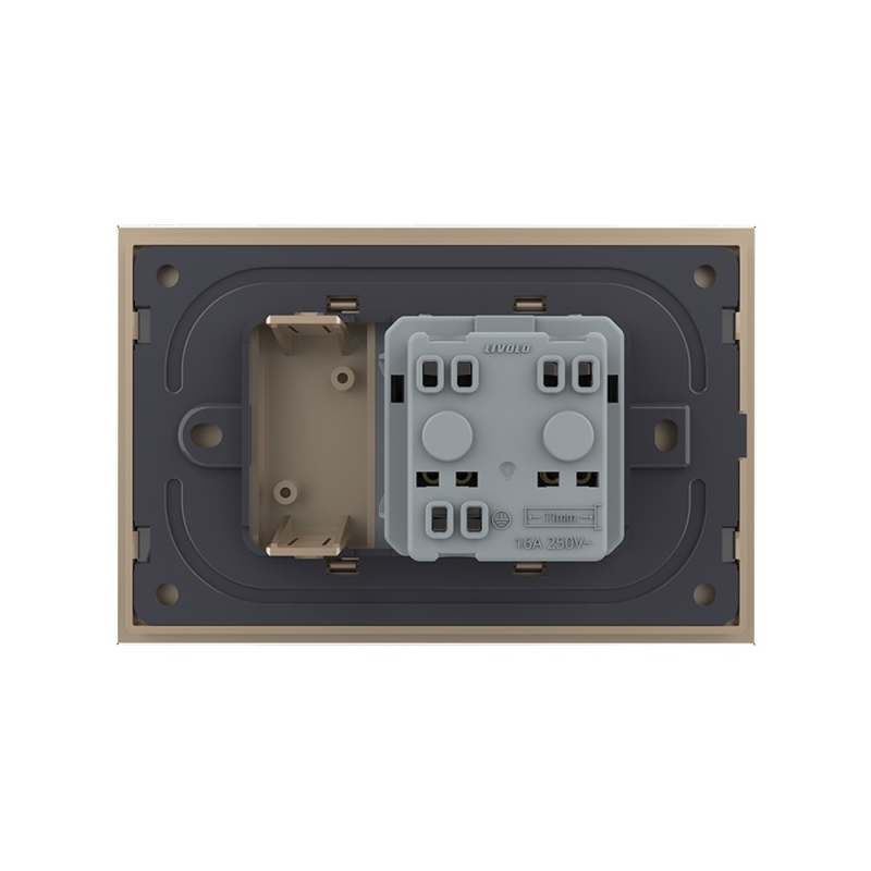 Priza simpla cu blank Livolo cu rama din sticla 3M, standard Italian, Serie noua, Auriu, VL-C9-C1EU-13