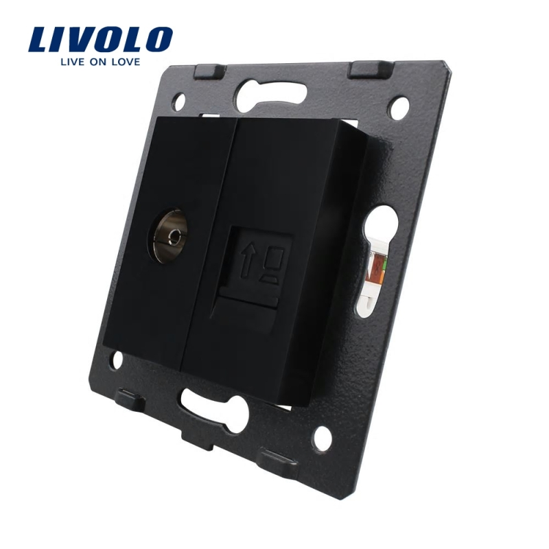 Priza dubla televizor + priza internet Livolo, Negru, C7-1VC-12
