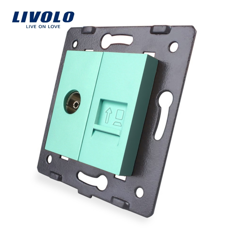 Priza dubla televizor + priza internet Livolo, Verde, C7-1VC-18
