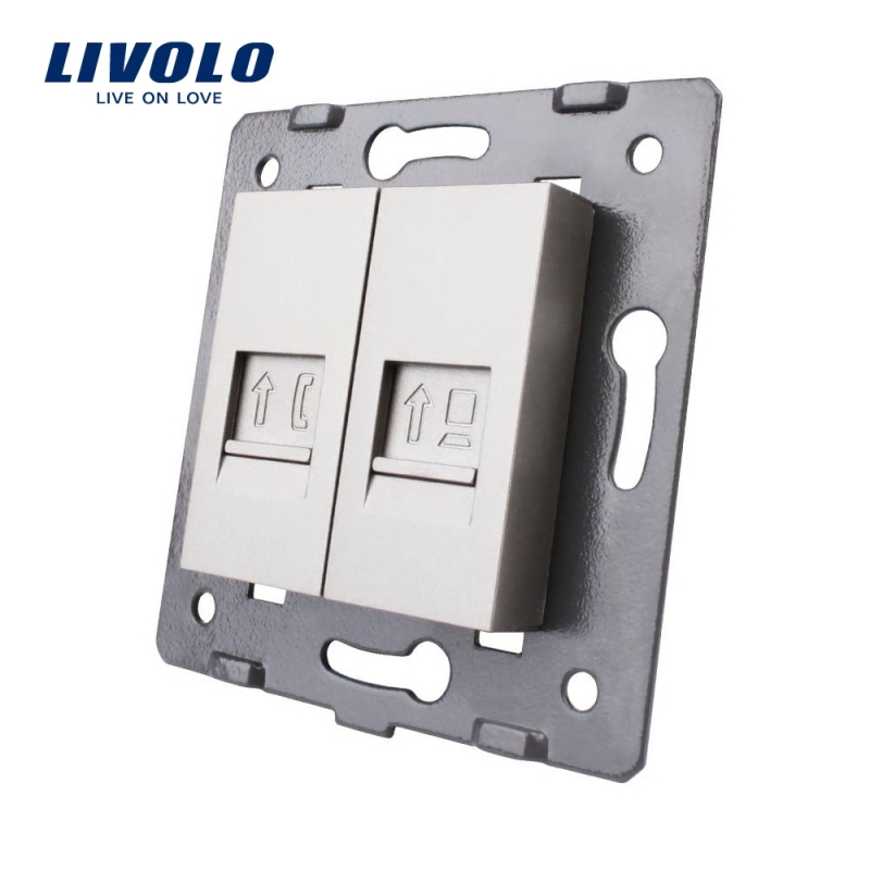 Priza dubla telefon + internet Livolo, Gri, C7-1TC-15