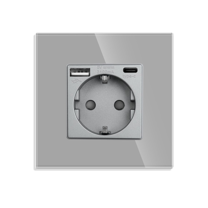 Priza simpla LUXION din rama de sticla formata dintr-o priza simpla si 2 prize USB-A si USB-C. Prizele LUXION se diferentiaza prin design-ul compact, elegant si minimalist. Sunt versatile, dispun de protectie pentru copii, iar tehnologia de ultima generatie favorizeaza economisirea de energie. Structura este durabila, iar prizele nu se decoloreaza in timp. Este un produs practic, fabricat din materiale de calitate si rezistent in timp, ce ofera utilitate si confort casei tale. Atentie! Nu incape in doza normala! Trebuie doza dubla ca adancime Atentie! Nu merg simultan toate cele 3 iesiri