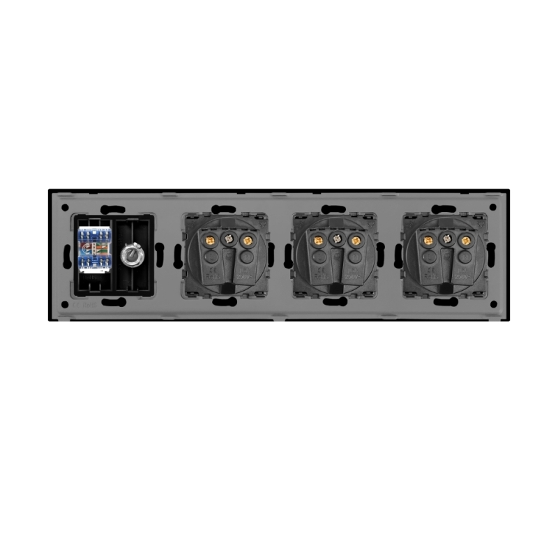 Priza tripla schuko + tv + internet LUXION se diferentiaza prin design-ul compact, elegant si minimalist. Prizele Luxion sunt versatile, dispun de protectie pentru copii, iar tehnologia de ultima generatie favorizeaza economisirea de energie. Structura este durabila, iar prizele nu se decoloreaza in timp. Este un produs practic, fabricat din materiale de calitate si rezistent in timp, ce ofera utilitate si confort casei tale.