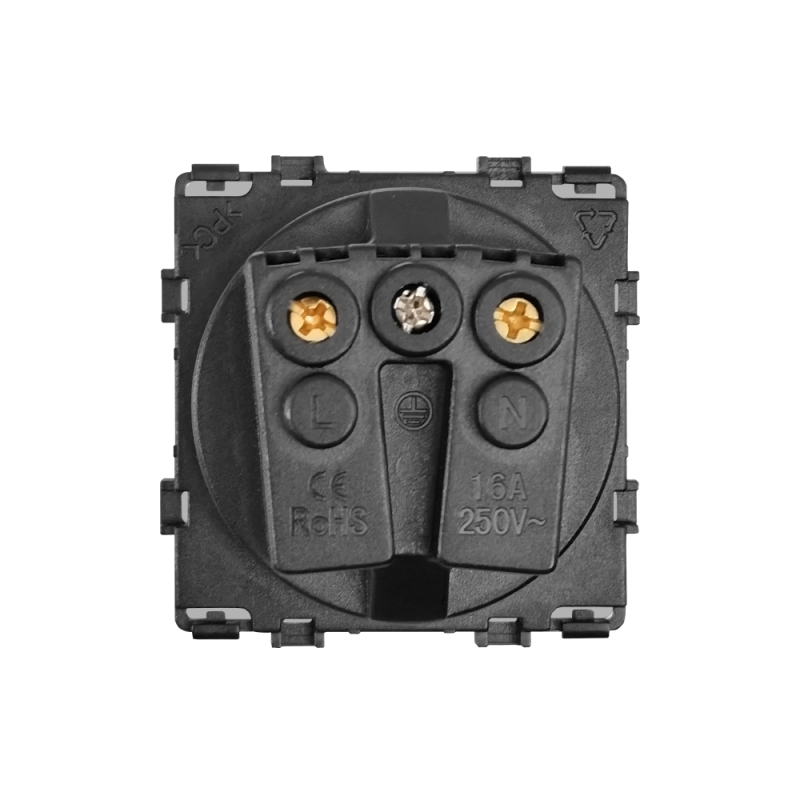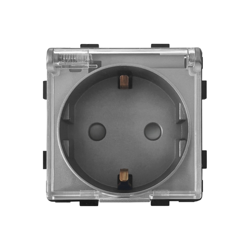 Modulul de priza simpla cu protectie Luxion se poate monta impreuna cu alte prize simple sau media Luxion pe o rama din sticla sau impreuna cu un intrerupator pe un panou din sticla. Compatibil doar cu ramele din sticla LUXION