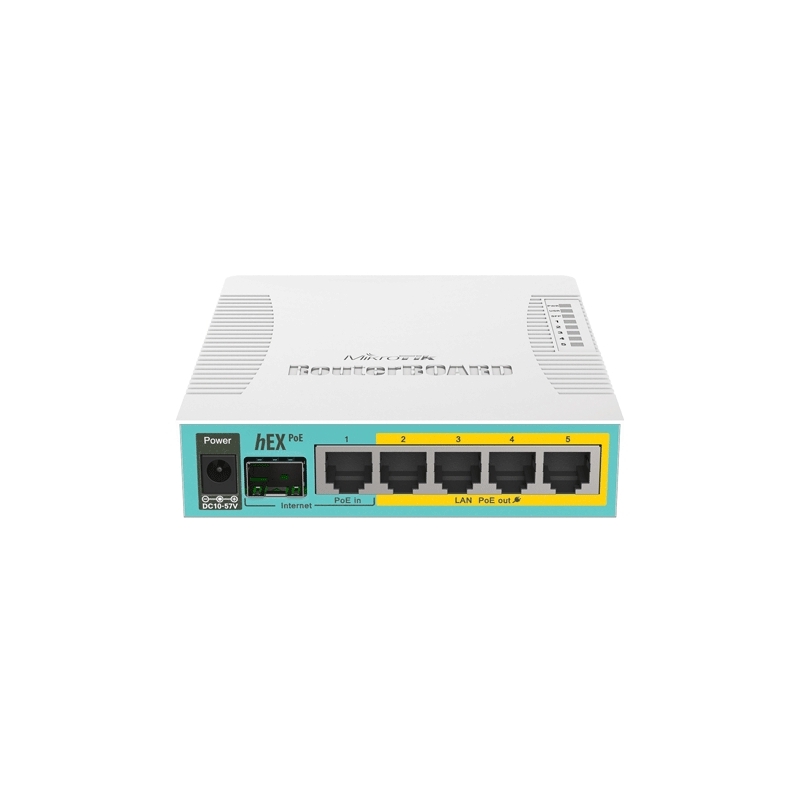 hEX PoE este un router Ethernet Gigabit cu cinci porturi pentru locatii in care nu este necesara conectivitatea wireless. Dispozitivul are un port USB 2.0 si un port SFP pentru optiunea de fibra optica. Porturile 2-5 pot alimenta alte dispozitive capabile PoE cu aceeasi tensiune aplicata unitatii. Are un pret accesibil, este mic si usor de utilizat, dar in acelasi timp vine cu un procesor foarte puternic de 800 MHz, capabil de toate configuratiile avansate acceptate de RouterOS. Mai putine adaptoare de alimentare si cabluri de care sa va faceti griji! Curentul maxim este 1A per port, porturile Ethernet fiind ecranate. Accepta intrare PoE pasiva si iesire pasiva sau 802.3af/at daca este aliment cu o sursa de 48V. Porturile Ethernet 2-5 pot alimenta alte dispozitive capabile PoE cu aceeasi tensiune aplicata unitatii.