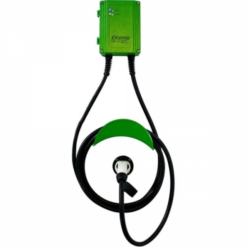 Statie de incarcare masini electrice, alimentare monofazata, 220V/16A, 3.6 kW, cu cablu de alimentare si mufa Type 2, LED prezenta tensiune, LED incarcare, dimensiuni 250x200x115, alimentare 220VAC ± 10%, frecventa 50Hz, protectie intemperii IP55, protectie antivandal IK10, carcasa aluminiu, culoare verde RAL 6018, montaj pe perete, contine support de cablu si support de mufa Type 2.Statia include protectie diferentiala/scurt circuit/supracurent de tip RCBO.