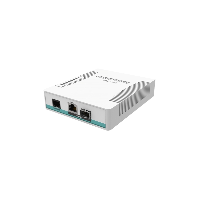 Cloud Router Switch-ul 106-1C-5S este un switch desktop de tip smart, cu procesor de 400MHz si 128MB RAM, echipat cu 1 port combo Gigabit Ethernet / SFP si 5 porturi SFP 1.25Gbps. Ruleaza sistemul de operare RouterOS cu licenta L5 si suporta o alimentare pasiv PoE de 11-30V, pachetul include sursa de alimentare.