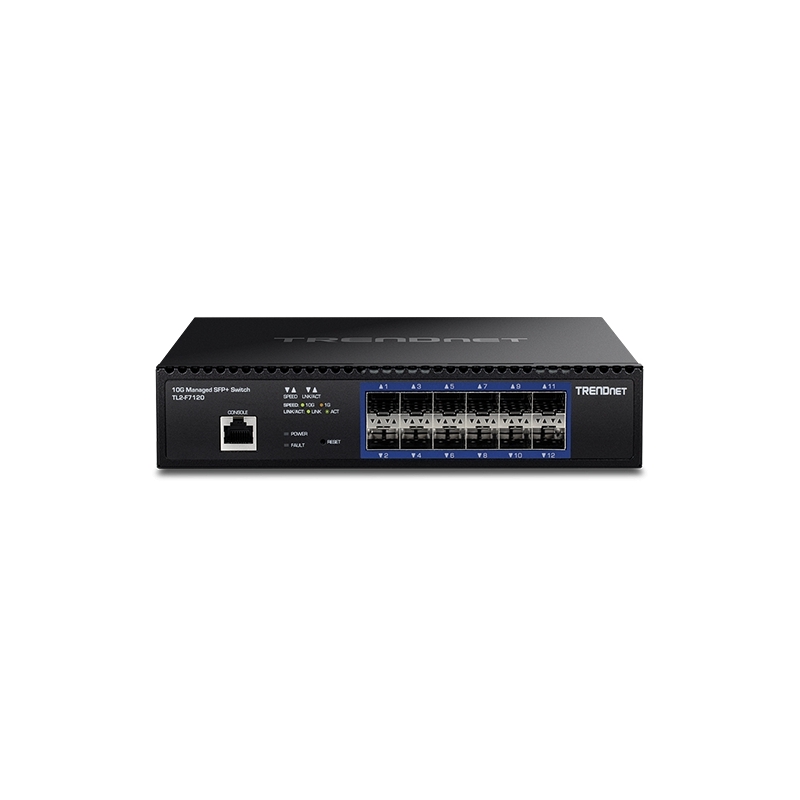 TL2-F7120 este un switch cu Management de 12 porturi SFP+ de 10G ce ofera un control avansat in gestionarea traficului, astfel indeplinind cererintele in continua schimbare a retelelor SMB. Acest dispozitiv ce poate fi montat in rack-uri IPv6 vine cu un sistem intuitiv bazat pe o interfata web. Functiile de management ale acestui dispozitiv ultrarapid 10G SFP+ includ LACP (pentru a creste latimea de banda intre switch-uri TL2-F7120 prin gruparea porturilor), VLAN (pentru segmentarea si izolarea grupurilor virtuale LAN), QoS (pentru prioritizarea traficului), SNMP (asigurand o solutie puternica pentru retelele de tip SMB). Imbunatatirea performantei de voce, prioritizand si izoland traficul VoIP de traficul normal de date.